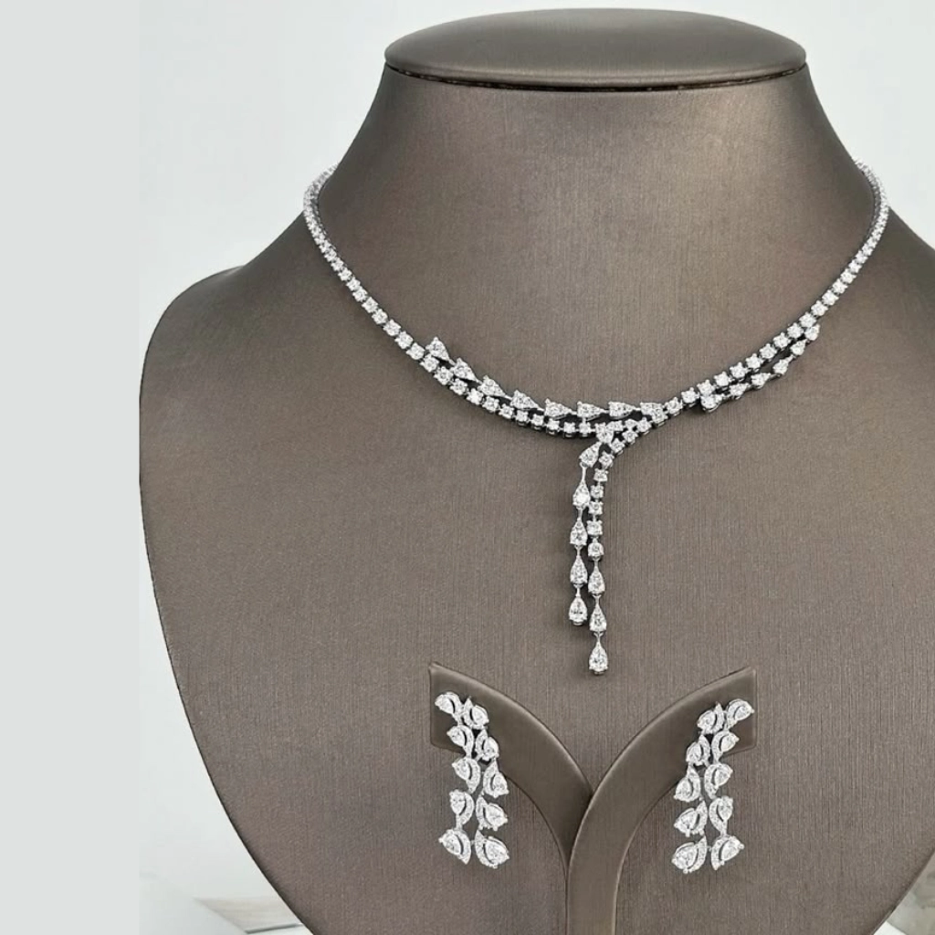نیم ست شامل گردنبند و گوشواره طلای ۱۸ عیار، هماهنگ و جذاب.